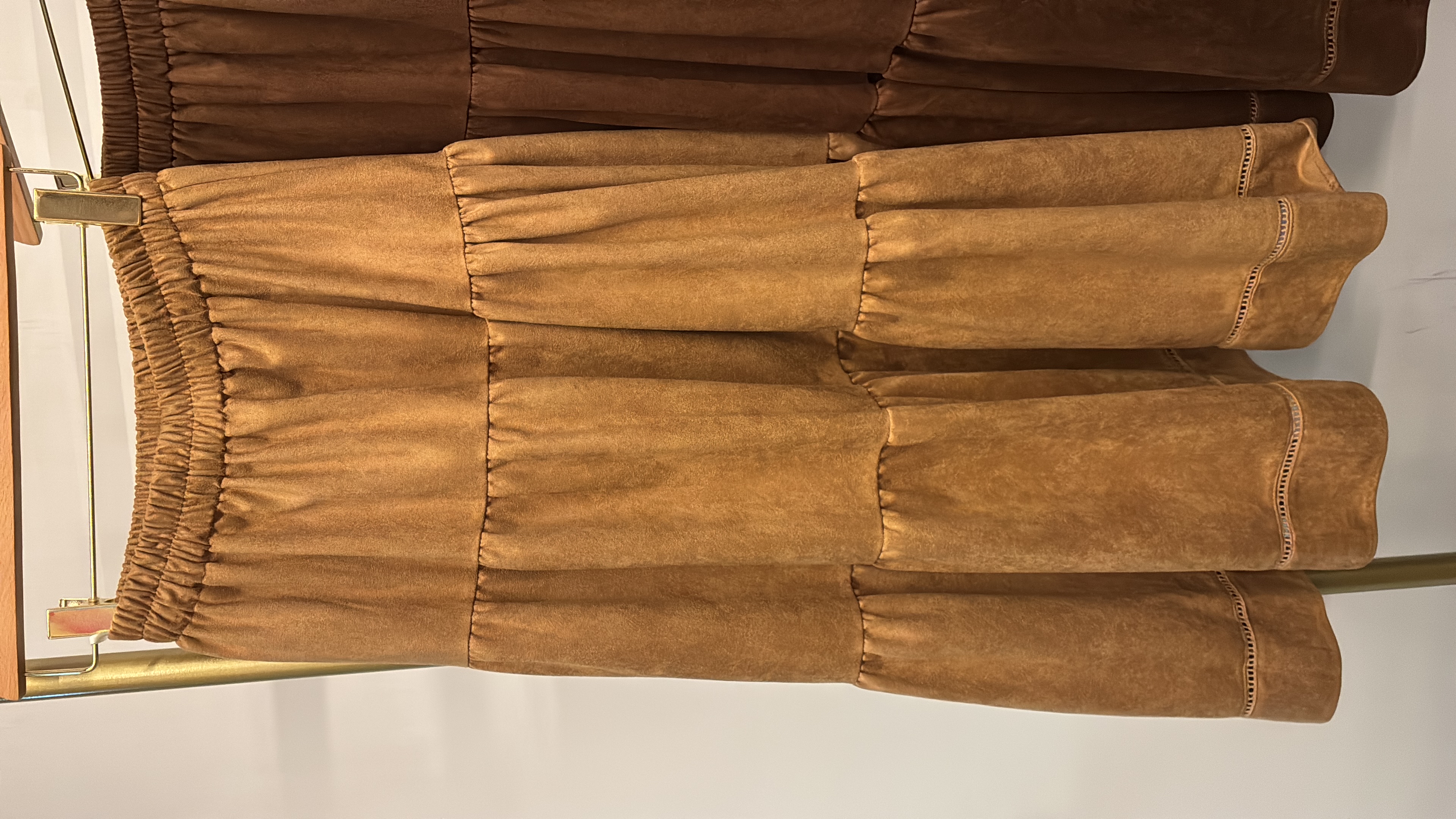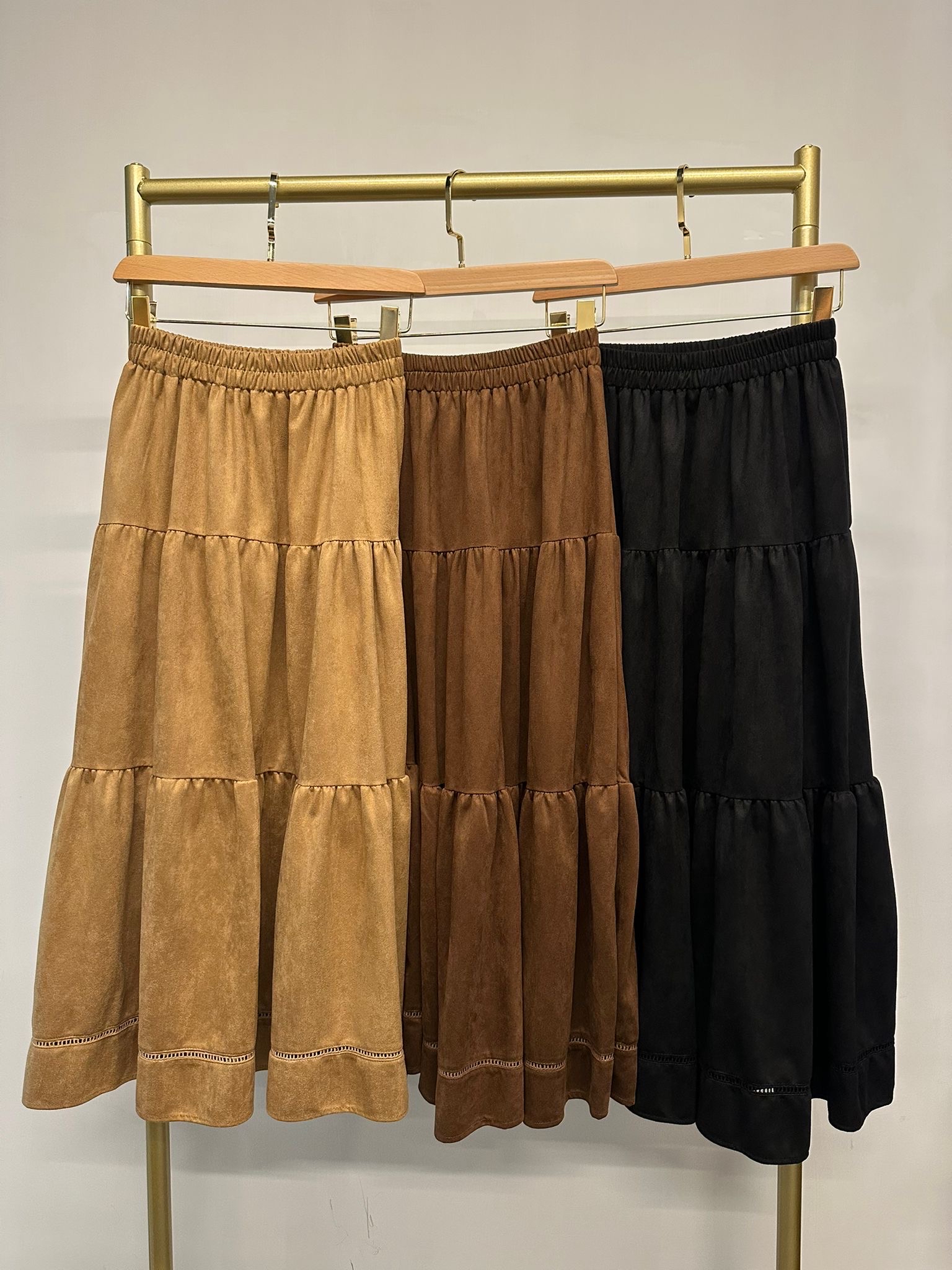 卡其色/深啡色/黑色麂皮绒面中腰A字半身裙