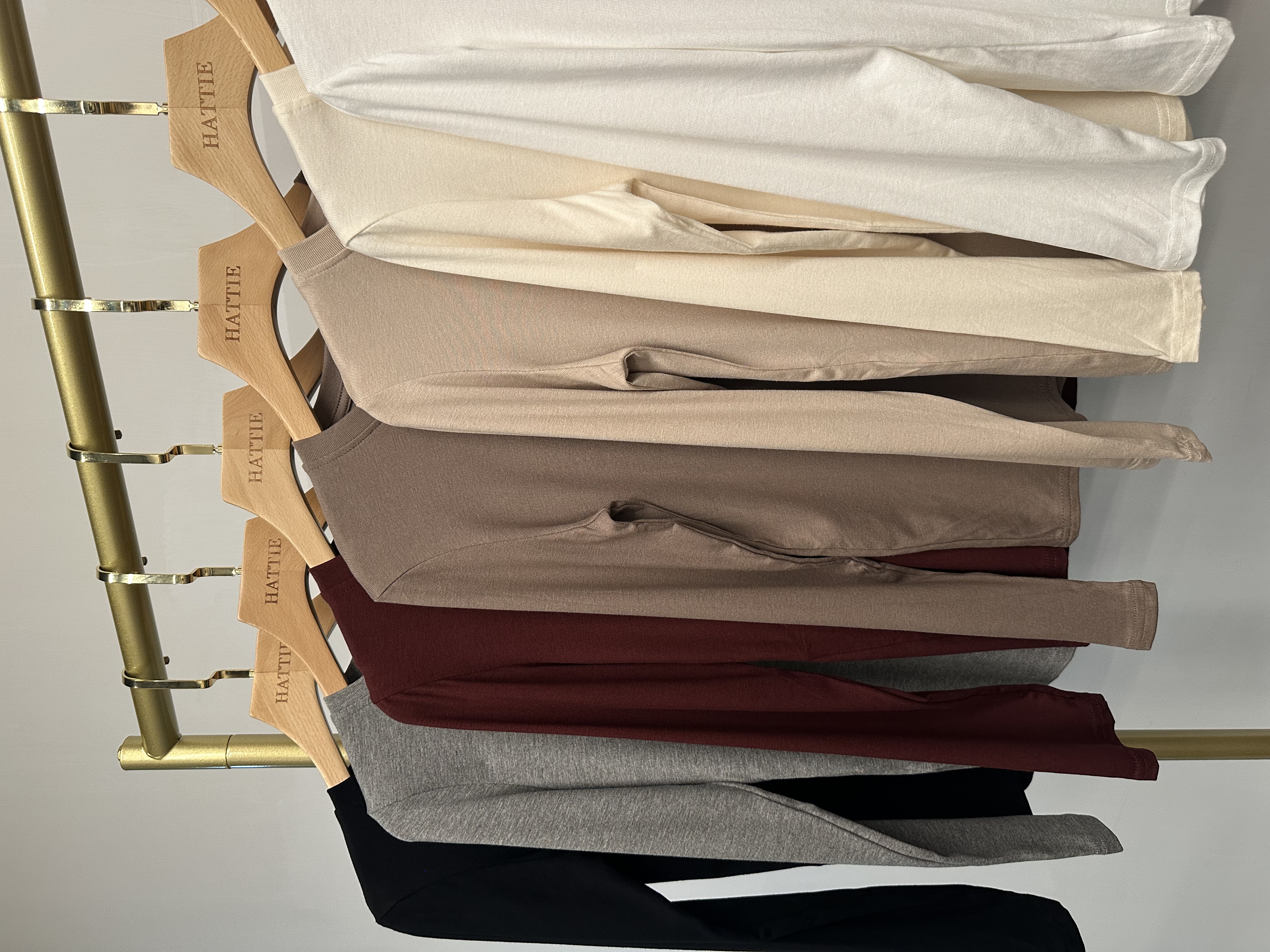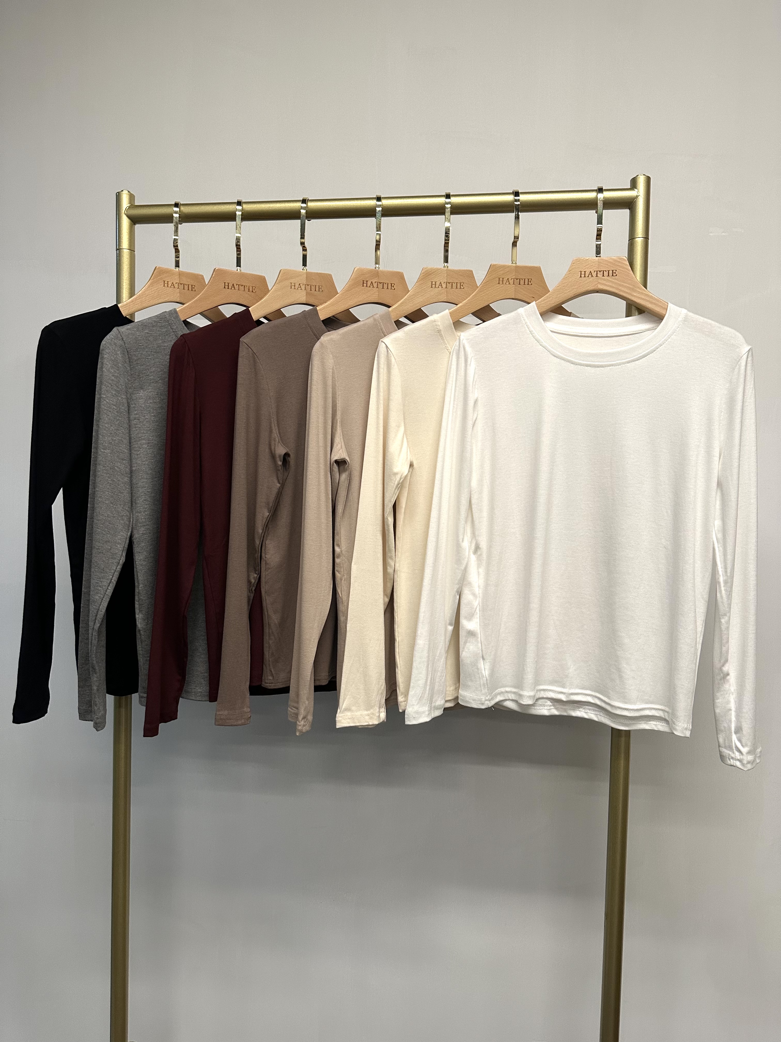 白色/杏色/奶茶色/卡其色/洒紅色/灰色/黑色 淨色款圓領百搭彈性長袖底衫