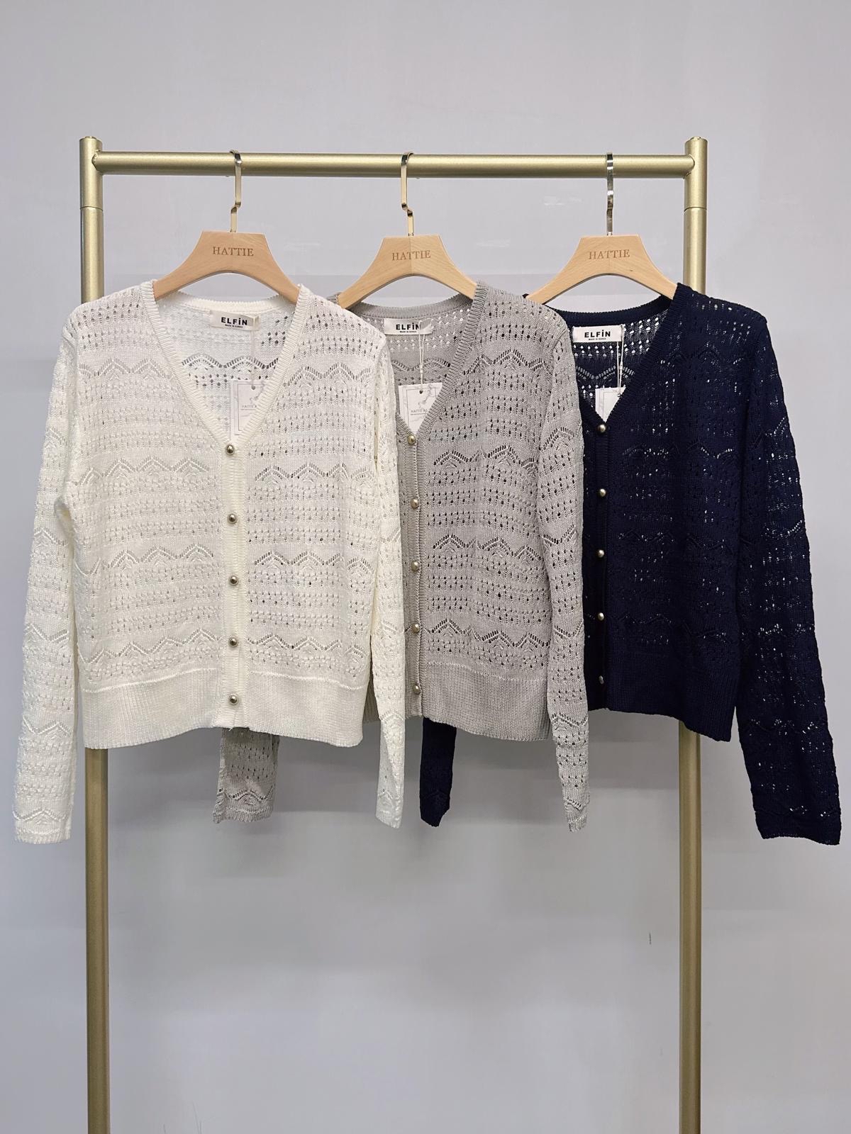 白色/灰色/深藍色V領鏤空針織外套