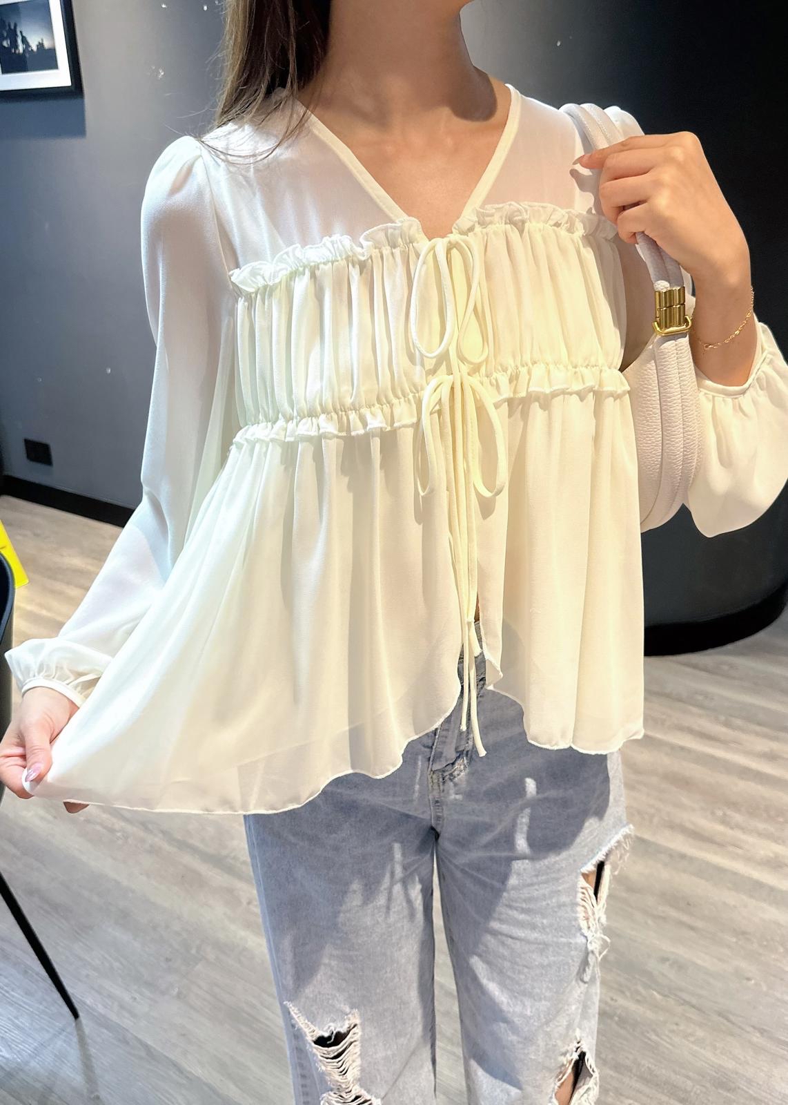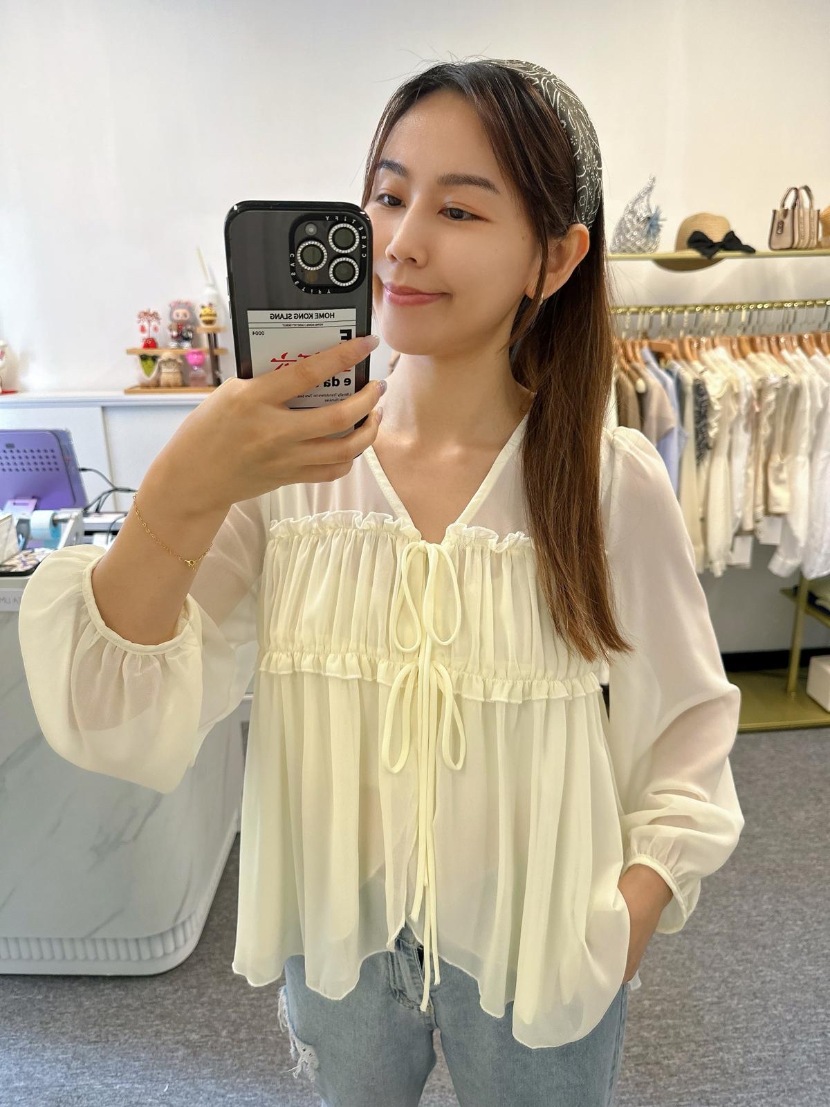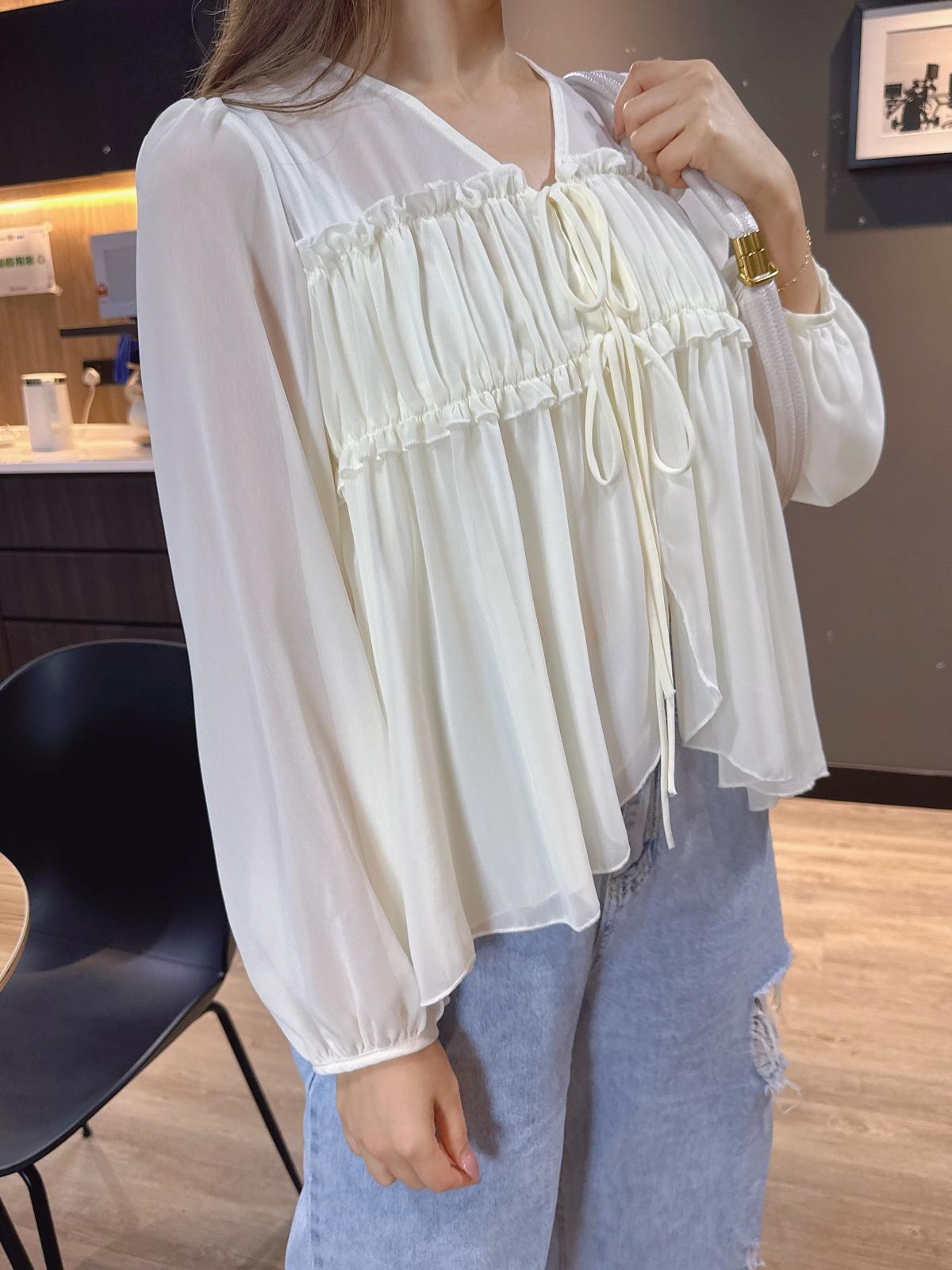 ## 優雅細緻,演繹知性美:米白色V領雪紡荷葉邊長袖上衣 這款米白色V領雪紡荷葉邊長袖上衣,採用輕盈飄逸的雪紡材質,旨在為您打造優雅知性的職場與日常穿搭。設計上兼顧舒適與美觀,將簡約的米白色調與精緻的荷葉邊元素巧妙結合,呈現出低調奢華的質感,是您衣櫥中不可或缺的百搭單品。 雪紡材質的特性賦予了上衣良好的透氣性和垂墜感,穿著舒適自在,同時展現出優雅的線條。V領設計能夠修飾頸部線條,視覺上拉長比例,更顯纖細修長。前胸及袖口的荷葉邊細節,則為整體造型增添了一絲浪漫氣息,打破了傳統辦公室穿搭的沉悶感。 無論是搭配俐落的西裝褲、優雅的裙裝,或是休閒的牛仔褲,這款上衣都能輕鬆駕馭,展現出不同的風格魅力。其簡約的米白色調,更便於與各種色彩和款式的服裝進行搭配,讓您在各種場合都能自信展現個人品味。 **重點功能:** * **優質雪紡材質:** 輕盈透氣,垂墜感佳,提供舒適的穿著體驗。 * **修飾V領設計:** 拉長頸部線條,展現纖細優雅氣質。 * **精緻荷葉邊細節:** 前胸及袖口點綴荷葉邊,增添浪漫氣息。 * **百搭米白色調:** 簡約大方,易於與各種色彩和款式的服裝搭配。 * **長袖設計:** 適用於多種場合,提供適度的保暖效果。 * **易於保養:** 建議手洗或乾洗,可保持衣物最佳狀態。 無論是正式的商務會議,還是輕鬆的週末約會,這款米白色V領雪紡荷葉邊長袖上衣都能為您帶來優雅自信的穿搭體驗,是您展現個人魅力的理想選擇。